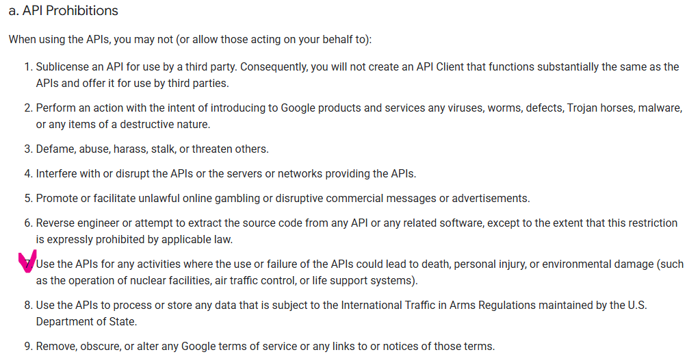 📌 Google API 사용 금지사항(A. API Prohibitions) - 4.a.7